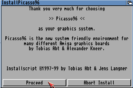 Danach sollten wir in Prefs unter Screenmode die Picasso96 Screen Modes auswählen können.Das ganze gibt es auch als Youtube Video. Picasso 2.0 Treiber installieren (Youtube Anleitung): Youtube Video Link
